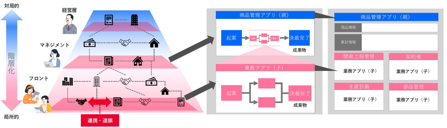 - 多階層の親子関係でワークフロー・データを一元的に連携